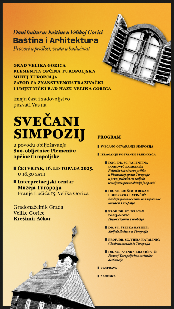 U povodu 800. obljetnice Plemenite opčine turopoljske, u četvrtak, 16. listopada 2025. u 16:30 sati u Interpretacijskom centru Muzeja Turopolja u Velikoj Gorici održat će se svečani simpozij. Simpozij obuhvaća izlaganja uglednih predavača o različitim aspektima turopoljske baštine, a organiziraju ga Grad Velika Gorica, Plemenita opčina turopoljska, Muzej Turopolja te Zavod za znanstvenoistraživački rad i HAZU Velika Gorica.