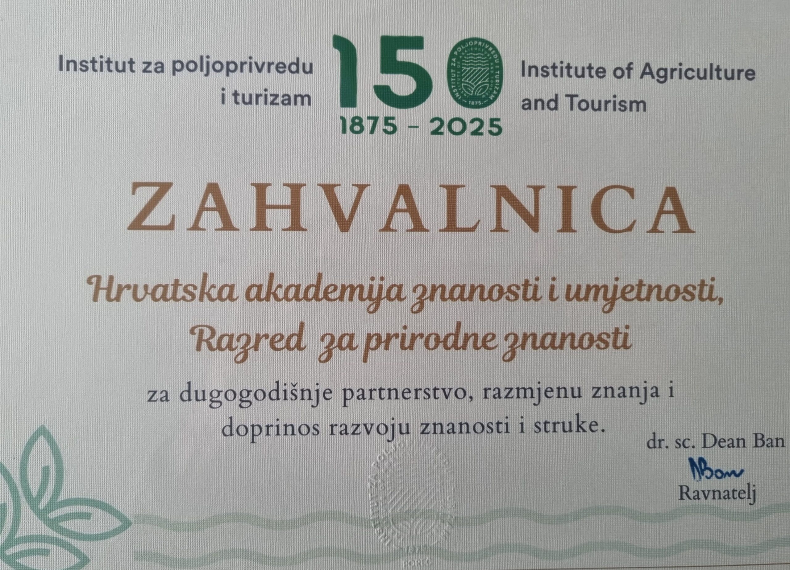 Akademik Bašić preuzeo je i zahvalnicu Instituta koju je dodijelio Razredu za prirodne znanosti HAZU za dugogodišnje partnerstvo, razmjenu znanja i doprinos razvoju znanosti i struke.