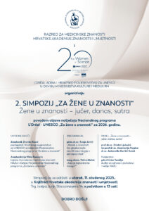 Razred za medicinske znanosti Hrvatske akademije znanosti i umjetnosti, L’Oréal Adria i Hrvatsko povjerenstvo za UNESCO u okviru Ministarstva kulture i medija RH organiziraju u utorak 11. studenog 2025. u 13 sati Knjižnici HAZU Drugi simpozij „Za žene u znanosti“ povodom objave natječaja Nacionalnog programa L’Oréal – UNESCO „Za žene u znanosti“ za 2026.