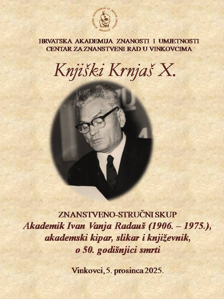 „Knjiški Krnjaš X.“, Znanstveno-stručni skup „Akademik Ivan Vanja Radauš (1906. – 1975.), akademski kipar, slikar i književnik, o 50. godišnjici smrti“, Vinkovci, 5. prosinca 2025.