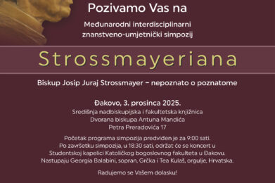 Međunarodni interdisciplinarni znanstveno-umjetnički simpozij Strossmayeriana pod nazivom „Biskup Josip Juraj Strossmayer – nepoznato o poznatome“ održan je u srijedu, 3. prosinca 2025. u Dvorani biskupa Mandića Središnje nadbiskupijske i fakultetske knjižnice u Đakovu (SNFK) . Simpozij je održan u sklopu XXIII. Strossmayerovih dana, a povodom 210. obljetnice rođenja i 120. obljetnice smrti biskupa Strossmayera. Organizatori simpozija su Zavod za znanstveni i umjetnički rad HAZU u Đakovu, Grad Đakovo i Kreativna kulturna mreža Osijek.