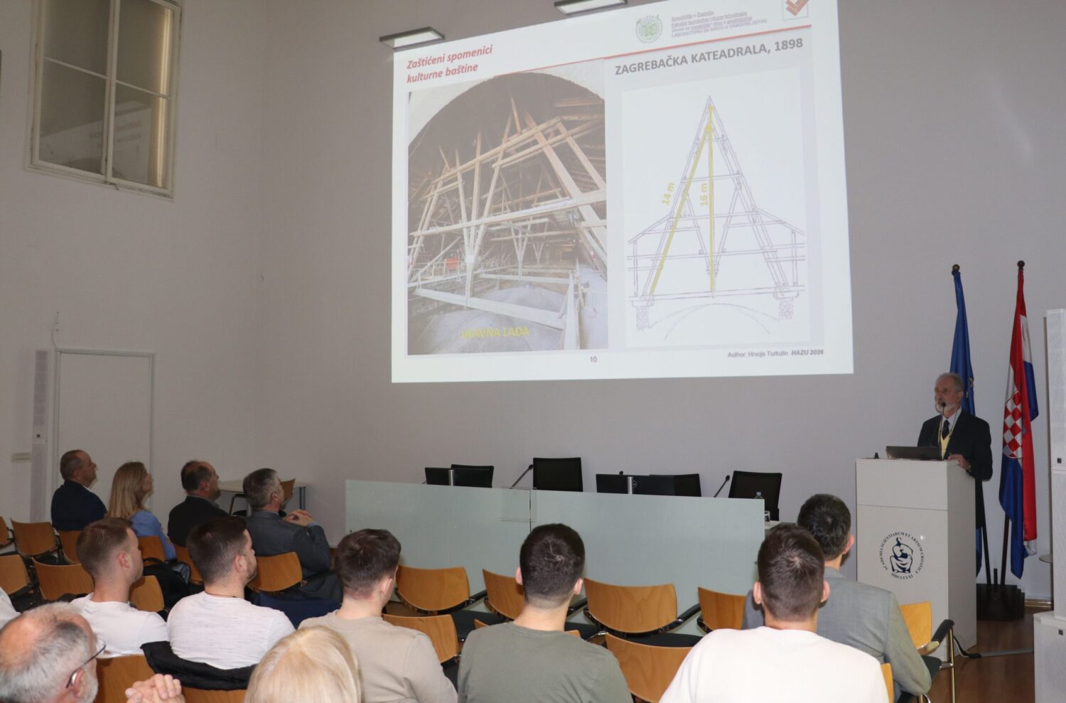 Znanstveno vijeće za poljoprivredu i šumarstvo Hrvatske akademije znanosti i umjetnosti organiziralo je predavanje Obnova drvenih konstrukcija na spomeničkoj baštini koje je održano u Knjižnici HAZU 6. ožujka 2026. Predavači su bili prof. dr. sc. Hrvoje Turkulin, redoviti profesor u trajnom izboru na Fakultetu šumarstva i drvne tehnologije Sveučilišta u Zagrebu i Juraj Pojatina, dipl. ing. građ., izvršni direktor tvrtke Studio Arhing.