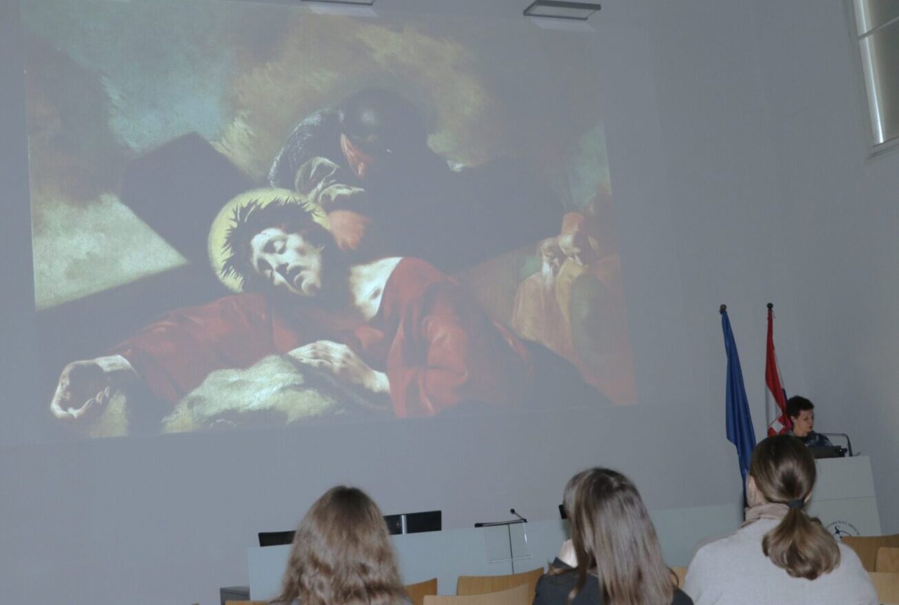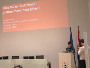 Isusova smrt na križu te događaji koji su tomu neposredno prethodili i/ili se zbili neposredno poslije, tema su mnogobrojnih umjetničkih djela u Strossmayerovoj galeriji Hrvatske akademije znanosti i umjetnosti. U ovoj prigodi, ususret blagdanu Uskrsa 2026., u vrijeme dok je stalni postav Strossmayerove galerije još uvijek nedostupan zbog radova na cjelovitoj obnovi Akademijine palače, predavanjem su pobliže predstavljeni odabrani primjeri oko kojih se formiraju i obrazlažu etape uskrsnoga ciklusa te ikonografska rješenja karakteristična za pojedina umjetnička razdoblja, razložena u tematskom slijedu: od Molitve u Getsemanskom vrtu, preko scena Muke (Bičevanja, Krunjenja trnovom krunom, Nošenja križa) i Smrti na križu, do Uskrsnuća i Uzašašća, te Silaska Duha Svetoga.