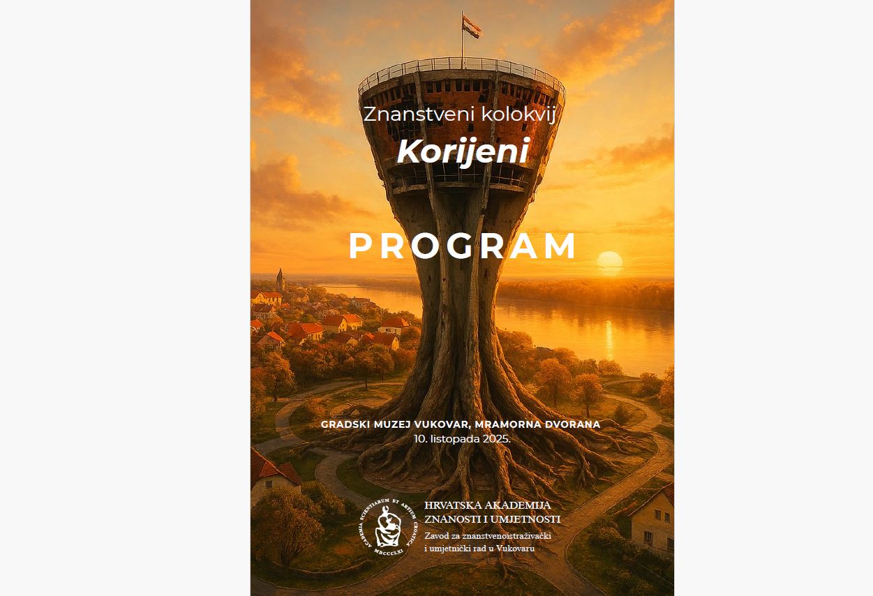 Zavod za znanstvenoistraživački i umjetnički rad Hrvatske akademije znanosti i umjetnosti u Vukovaru organizira u petak 10. listopada 2025. znanstveni kolokvij Korijeni koji će se održati u Mramornoj dvorani Gradskog muzeja Vukovar s početkom u 10 sati.
