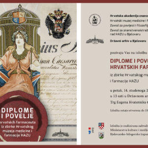 U povodu Godine ljekarništva u Republici Hrvatskoj, od 14. studenog do 19. prosinca 2025. u predvorju Državnog arhiva u Bjelovaru bit će postavljena izložba Diplome i povelje hrvatskih farmaceuta iz zbirke Hrvatskog muzeja medicine i farmacije HAZU.  Autorice izložbe, izv. prof. dr. sc. Stella Fatović-Ferenčić, dr. med., upraviteljica Zavoda za povijest i filozofiju znanosti i zamjenica voditelja Hrvatskog muzeja medicine i farmacije HAZU, te Silvija Brkić Midžić, prof., muzejska savjetnica i upraviteljica Hrvatskog muzeja medicine i farmacije HAZU, koncipirale su izložbu s ciljem da kroz diplome, povelje i druge dokumente predstave povijesni kontinuitet farmaceutske profesije, njezin društveni ugled i ulogu u oblikovanju zdravstvenog sustava.